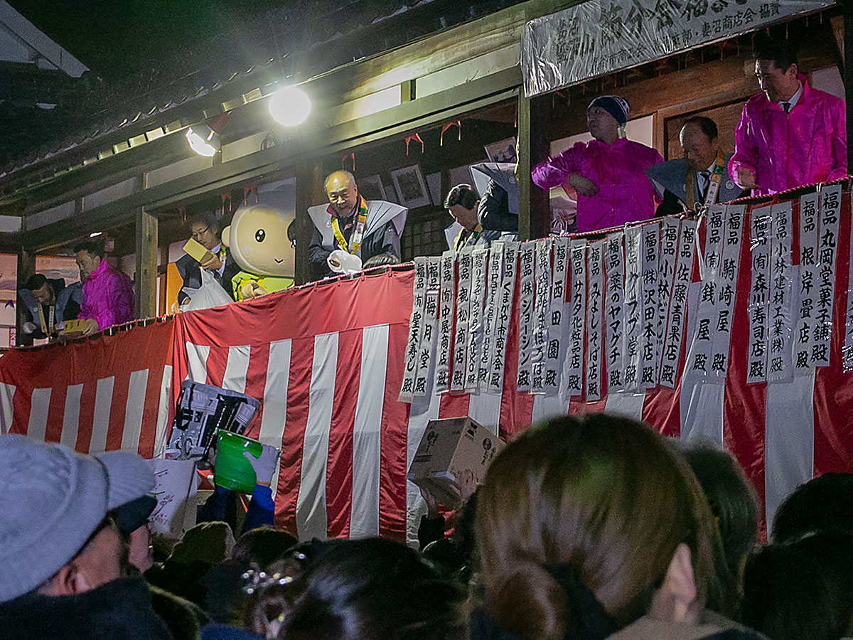 福男・福女のほか、妻沼聖天山の縁結びイメージキャラクター「えんむちゃん」も登場