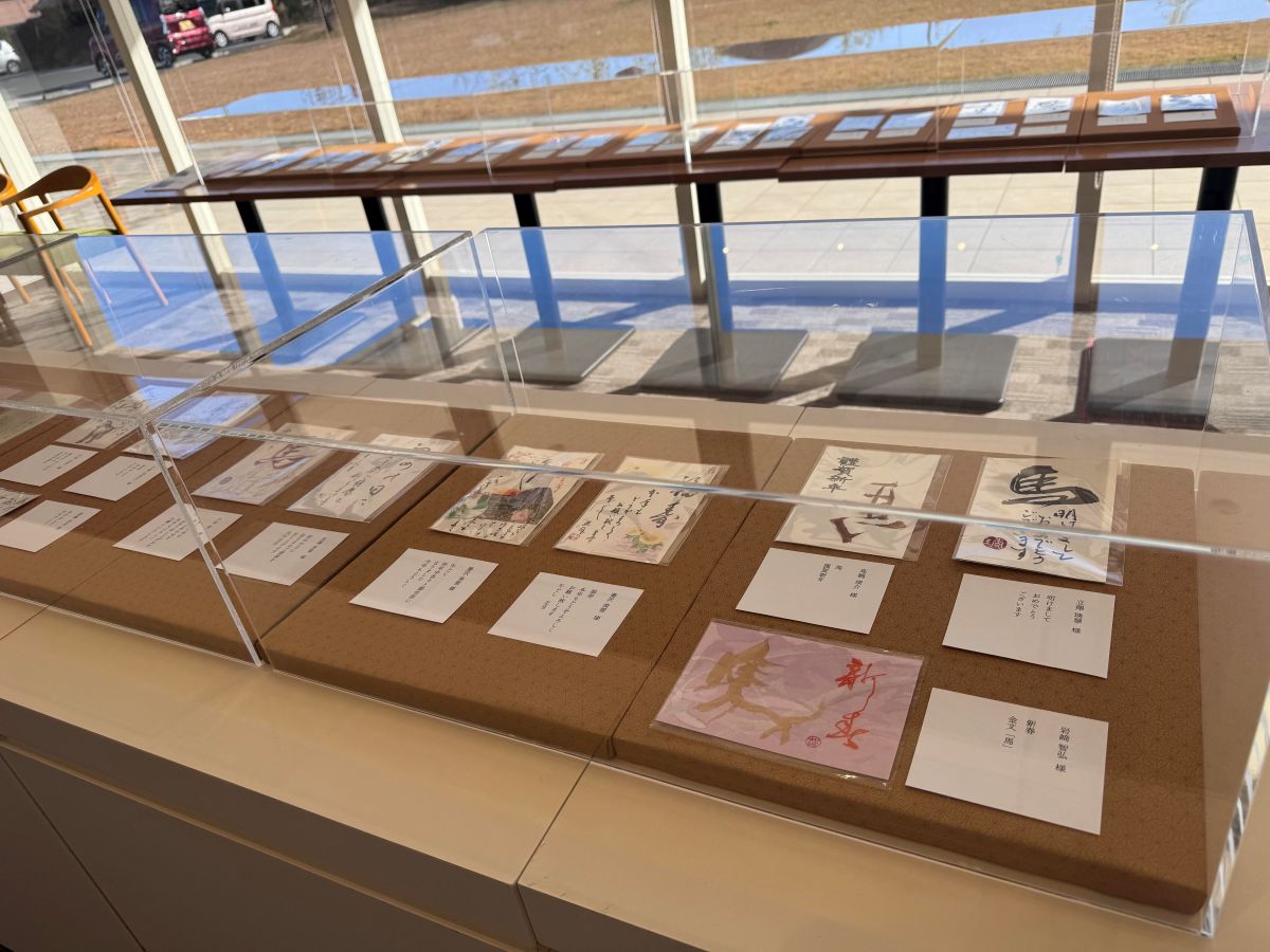 熊谷ゆかりの書家による新作年賀状が現在、梅林堂箱田本店(熊谷市箱田6、TEL 048-521-4651)に展示されている。