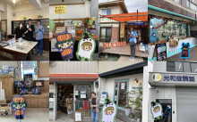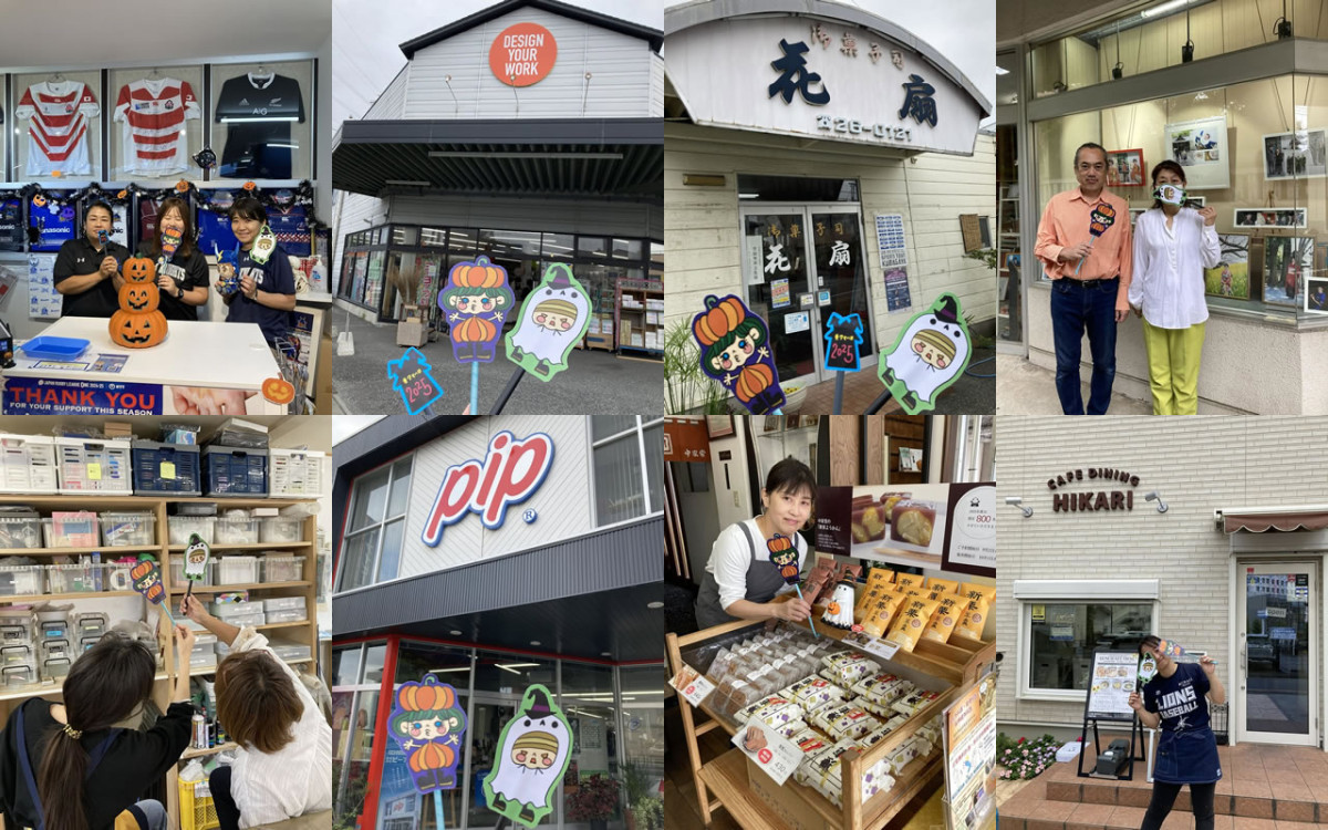 協賛店。上段左から「ワイルドナイツチームストア」「ムラヤマ 熊谷店」「御菓子司 花扇」「大沢写真館」、下段左から「各務ガラス工房」「株式会社ピーアイピー」「中家堂」「CAFE DINING HIKARI」