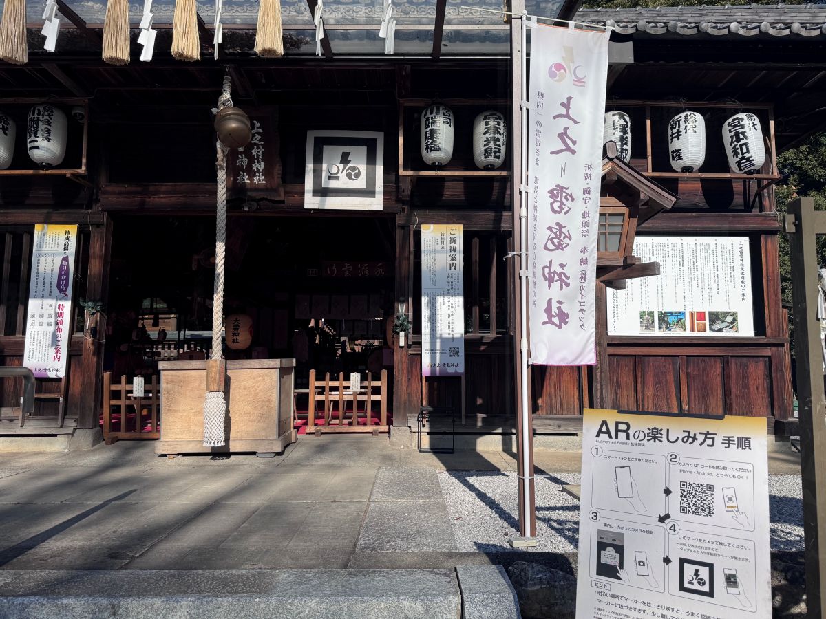 賽銭は「楽天PAY」「auPAY」でも納められる。拝殿前でQRコードを読み取ると、祭られている神さまがスマートフォンの画面にAR映像で浮かび上がる