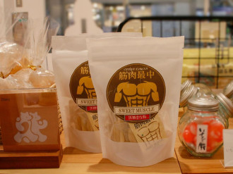 和菓子店「かんだ和彩」(熊谷市箱田)が2月28日、新商品「筋肉最中」の販売をJR熊谷駅構内の熊谷駅観光案内所で始めた。
