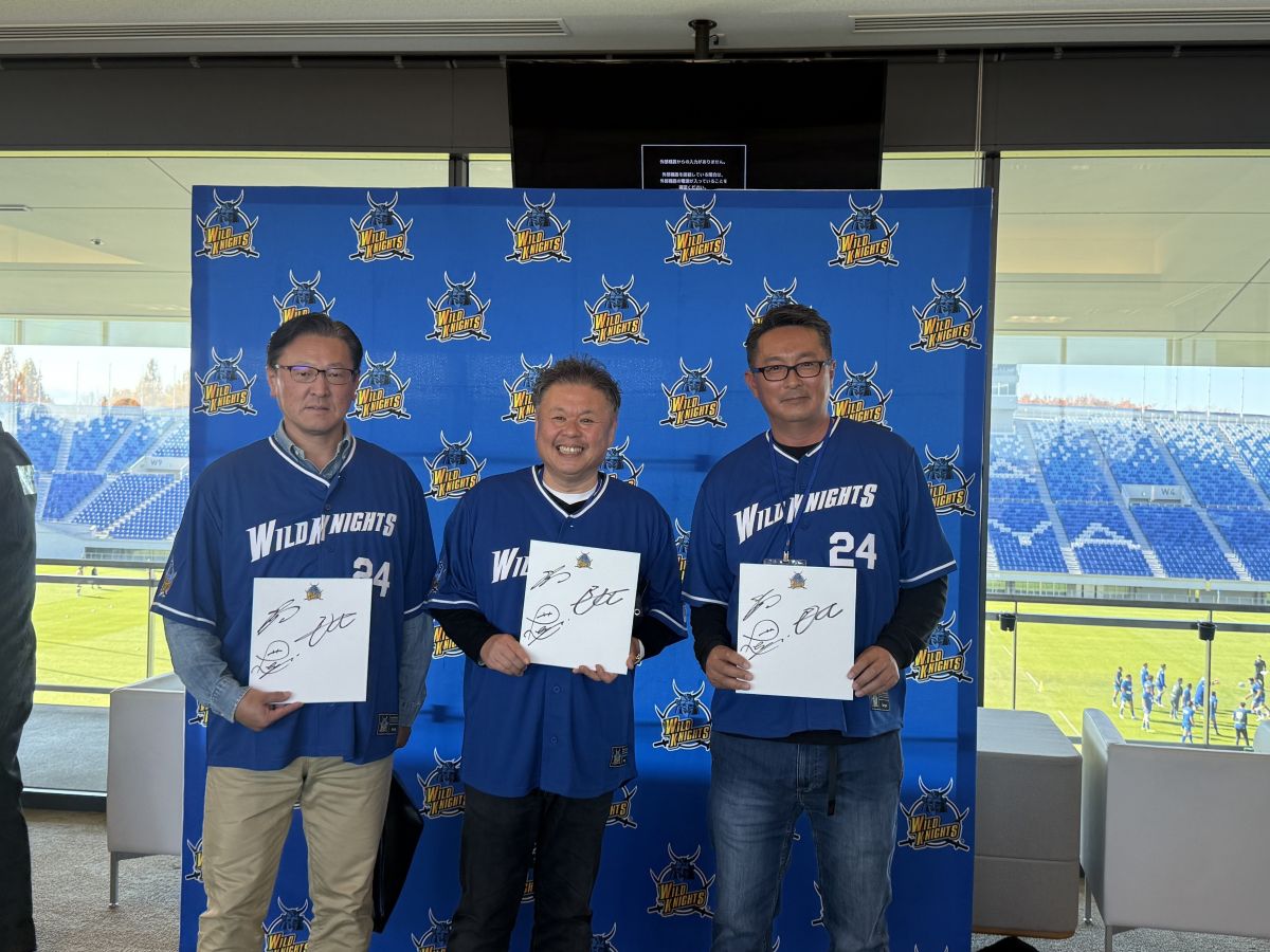 選手のサインを手にする埼玉パナソニックワイルドナイツ後援会の会員ら