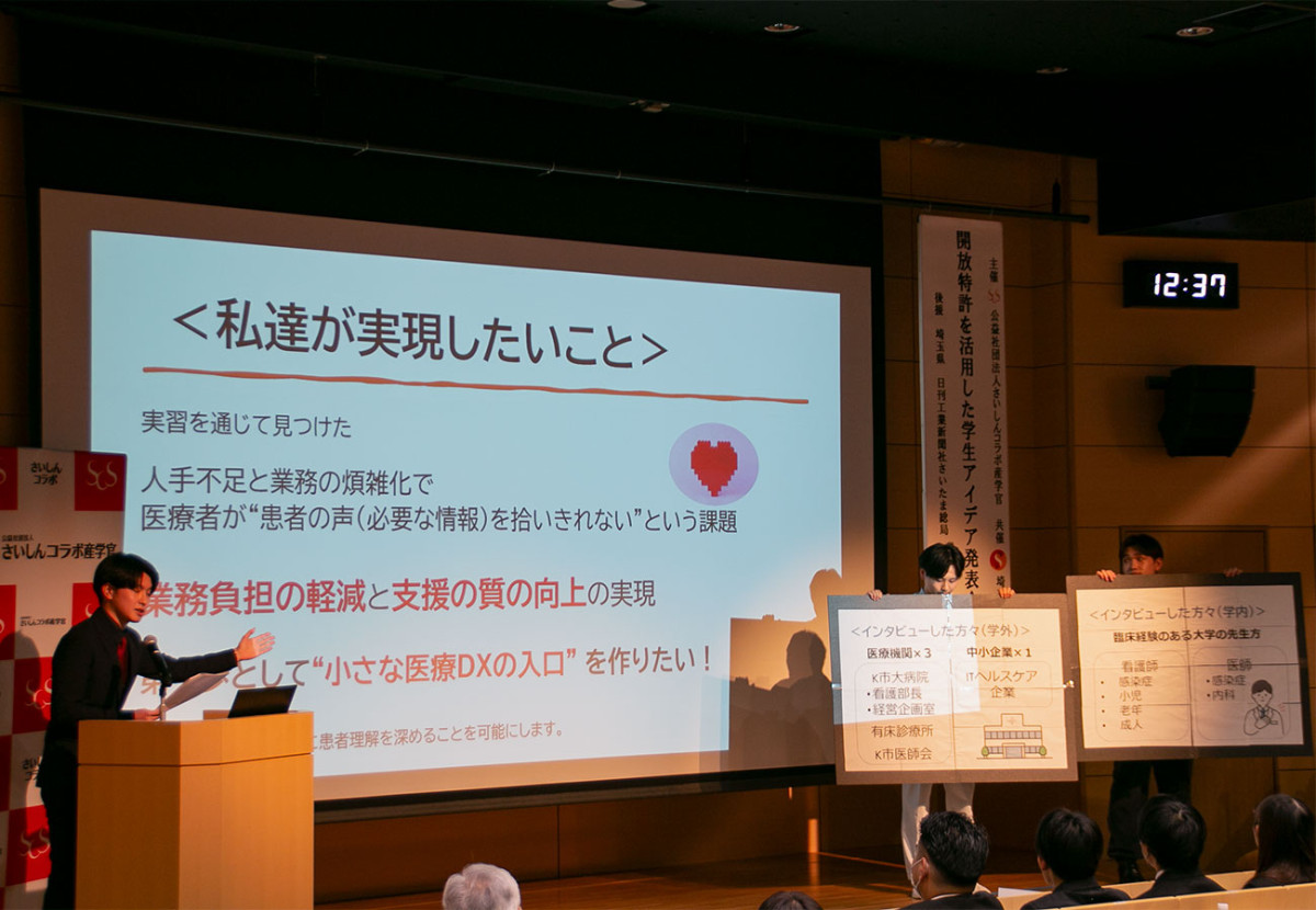 大手企業の開放特許を活用し、学生が新商品のアイデアを出す「開放特許を活用した学生アイデア発表会in埼玉」が12月2日、さいしんホール(熊谷市本町)で行われた。