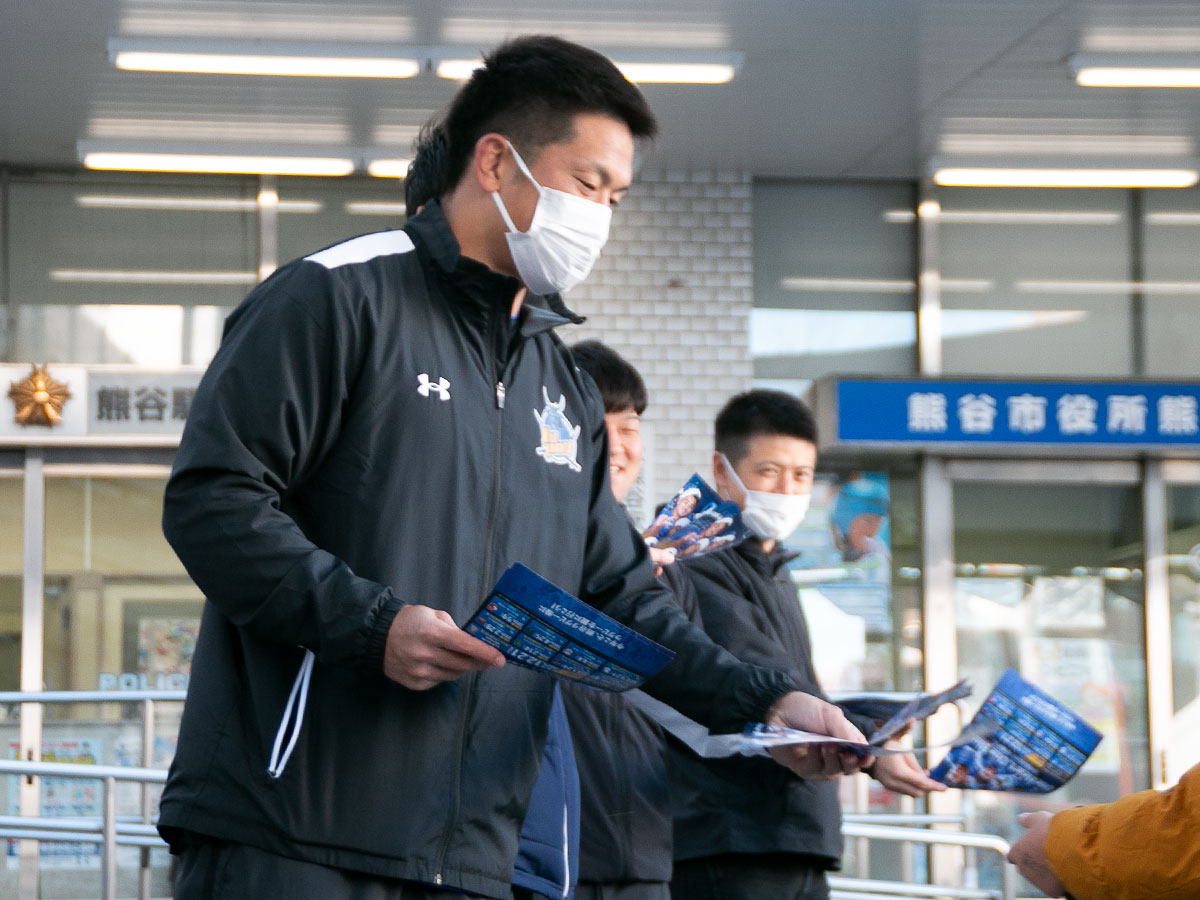 チームカラーの「ワイルドナイツブルー」に染まったホームタウン熊谷の玄関口