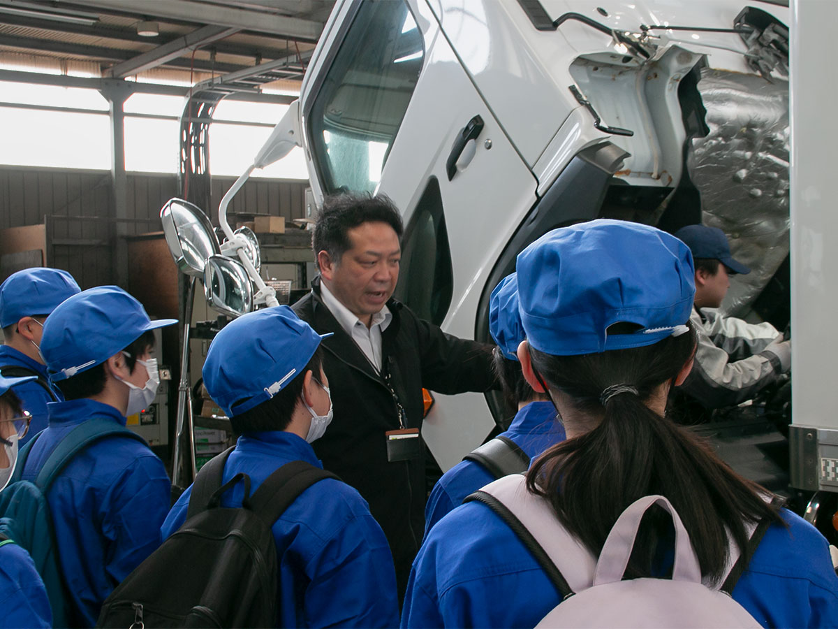 岡部西小の6年生児童32人が2月27日、坂田自動車工業(深谷市山河)で「自動車整備の魅力を学ぶ特別授業 」を受けた。