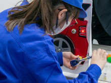 岡部西小の6年生児童32人が2月27日、坂田自動車工業(深谷市山河)で「自動車整備の魅力を学ぶ特別授業 」を受けた。