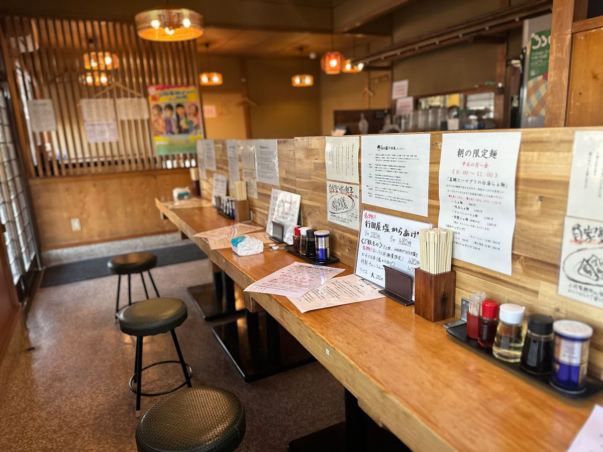 「らぁ麺 行田屋」店内のカウンター席